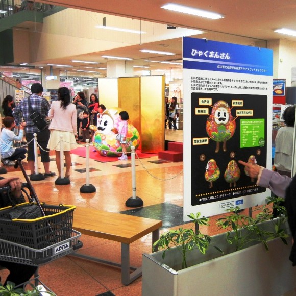 アピタ松任店1階アピタ広場で開催された「北陸新幹線クイズ大会とひゃくまんさん撮影会」にお出まし致しました。